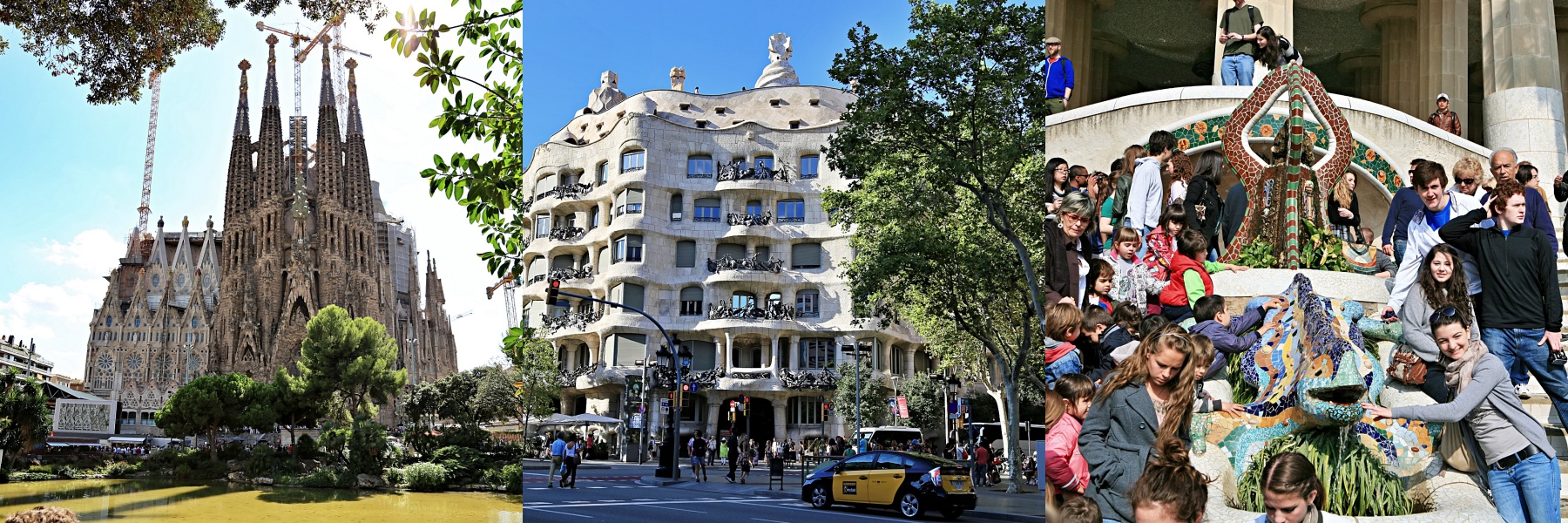 사그라다 파밀리아, 구엘 공원, 까사 밀라, 까사 바트요, 레이알 광장 등